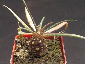 podzim dospělé rostliny doporučuji přestat pomalu zalévat a poté, co shodí listy, nezaléváme vůbec. Z areálu rozšíření druhu vyčteme, že není dobré nechávat spící rostliny v přílišném trvalém chladu, u nás mají místo v blízkosti radiátoru ve skleníku, aby měly možnost se vždy na část dne ohřát. Pokud se stonek začne nebezpečně scvrkávat a je to jen nedostatkem vody a ne hnilobou, raději rostlinu přenesu do bytu na okno a začnu mírně zalévat. Probudím ji tak