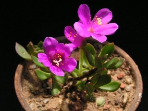 v okamžiku, kdy se na vrcholech stonků objeví (někdy i jednou větvené) květenství. Nafouklá poupata slibují, že květy nebudou žádná tintítka. Pak se jednoho odpoledne otevře docela nápadný až 1,5cm velký růžový květ s bílou bliznou a rozcuchanými nitkami, zakončenými krátkými žlutými prašníky. Rostlina je stejně jako většina jejích afrických kolegyň a kolegů rodů Avonia a Anacampseros samosprašná, po