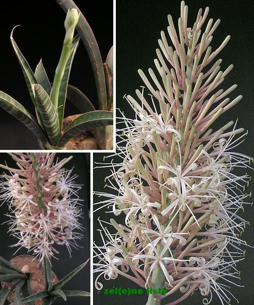 Odnož této tvrdě pěstované rostliny jsme dostali od jednoho cestovatele, který si ji přivezl v dávných dobách, kdy se to ještě bylo možné. Máme ji druhým rokem a jak vidíte, odměnila se nám takovouto parádou. Určitě jsme dobře udělali, že jsme ji zasadili do propustného substrátu v květináči z měkké umělé hmoty, protože stolony sansevier si rády tyto nádoby tvarují podle své potřeby. Zrovna S.aethiopica si květináč vytvarovala do pěkné elipsy (z horního pohledu). Za tu dobu, co ji máme, jí přibyl snad jen 1- 2 listy, zimy snáší nasucho a v sezóně dostává přiměřeně vody (cca 1 týdně). Říká si o přesazení do širší nádoby, na to si však musí počkat až po odkvětu.